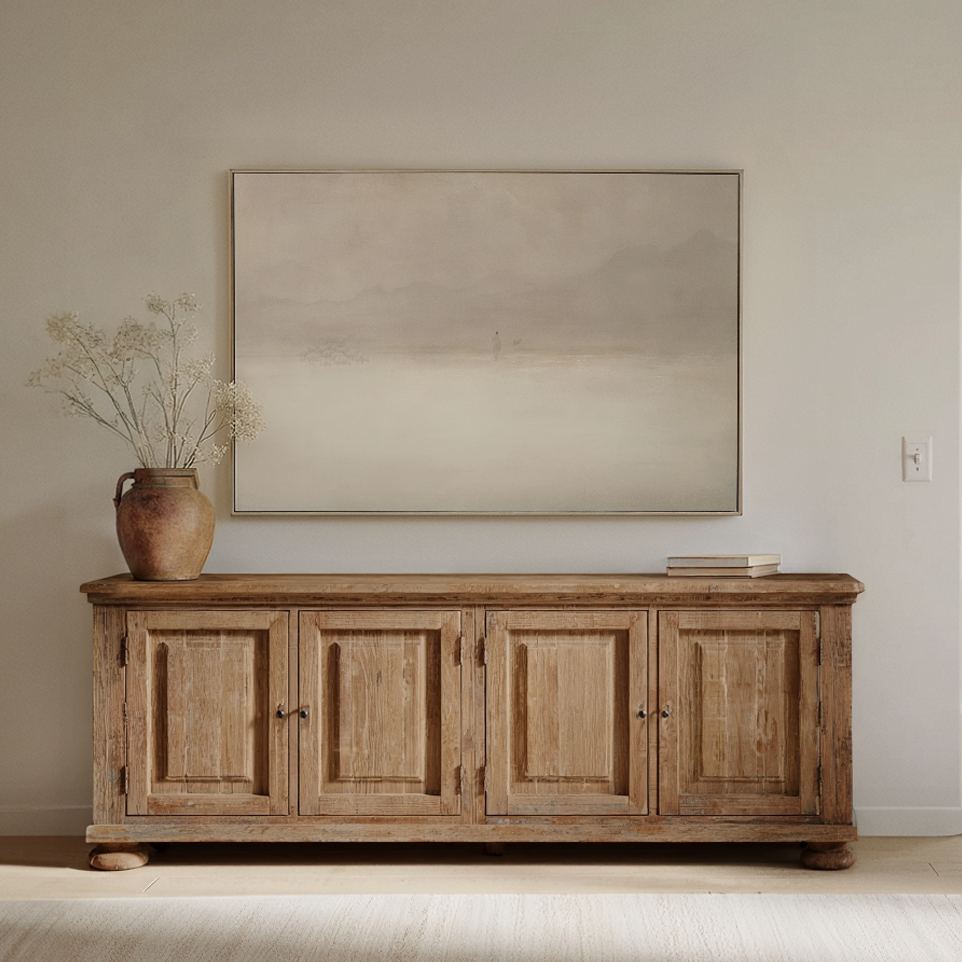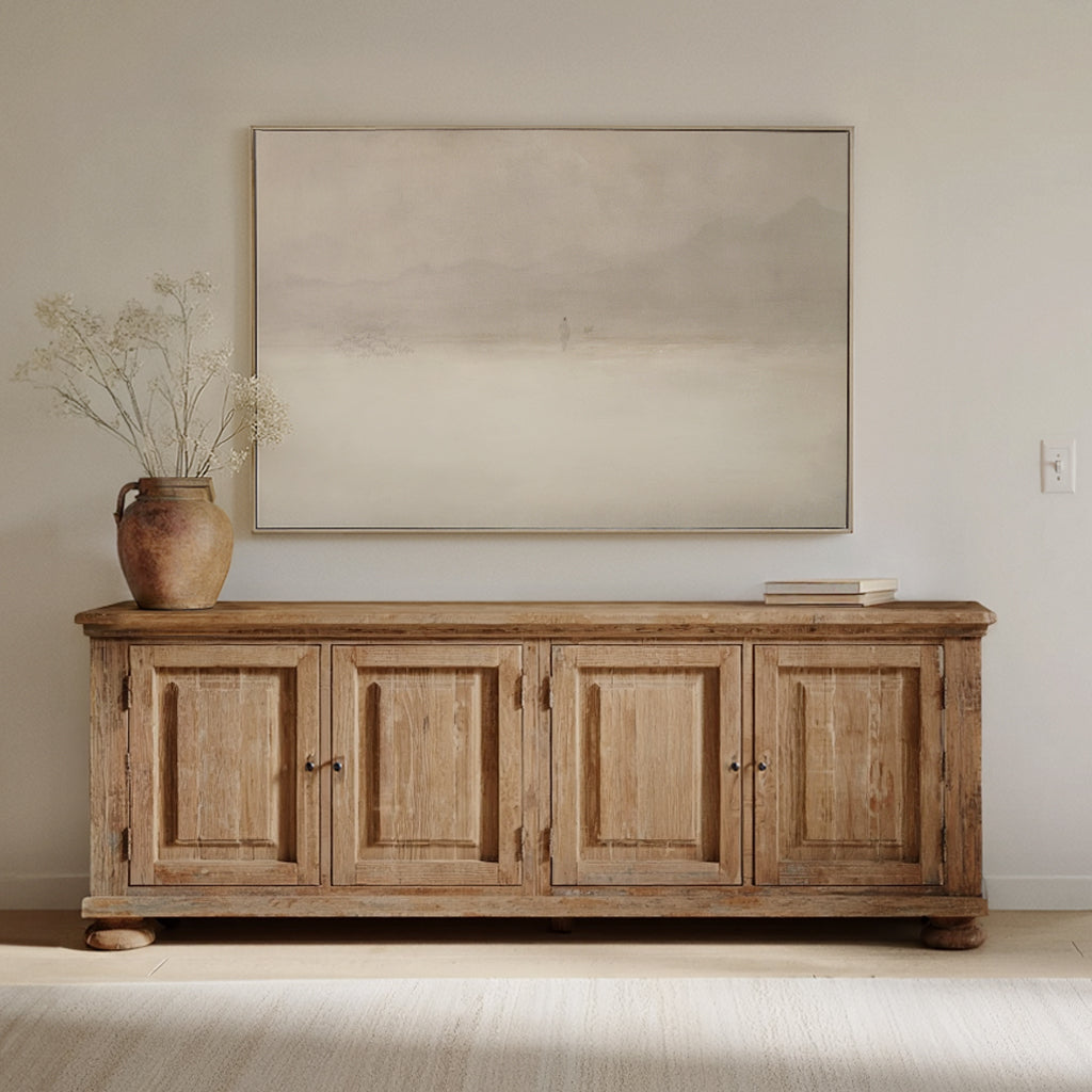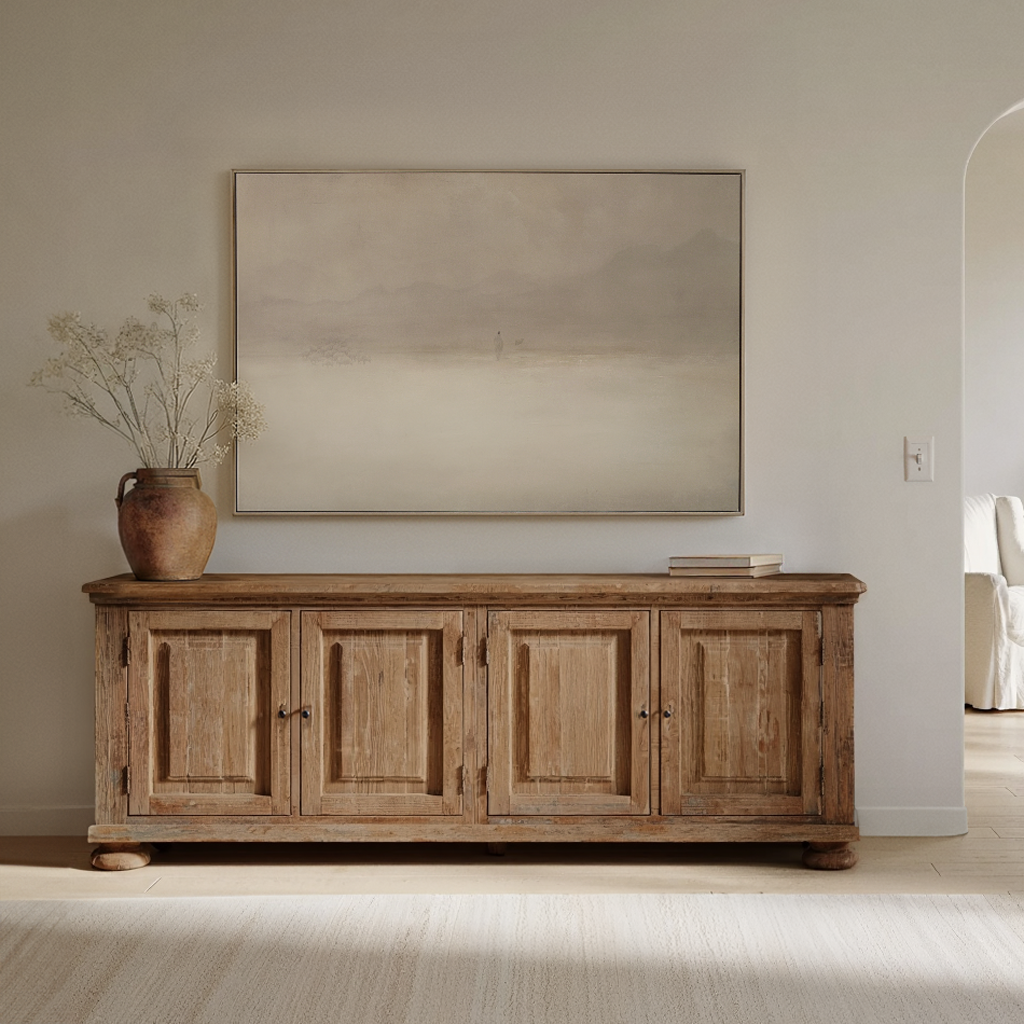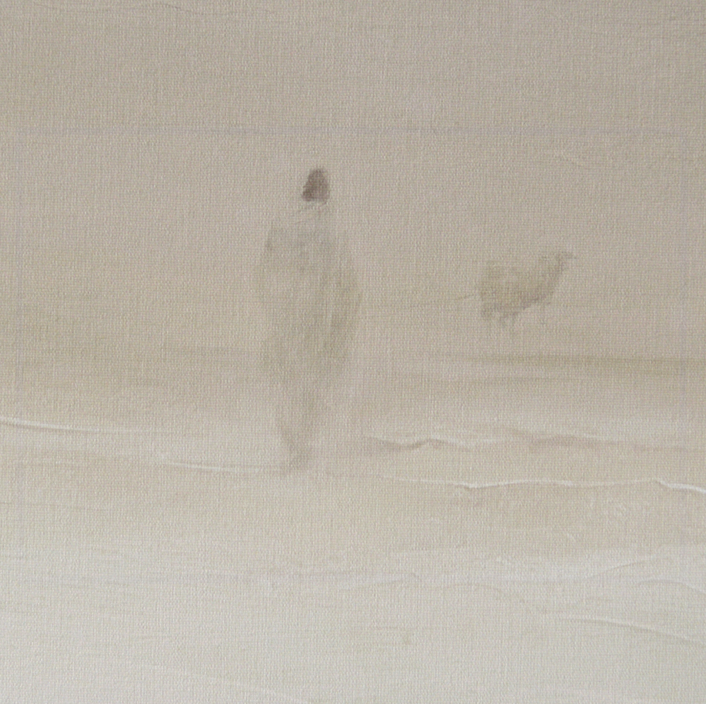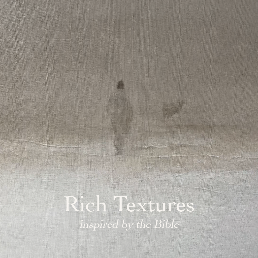 Premium canvas print of Jesus leaving the 99 for the 1 lost sheep. Featuring a serene grass field and mountain backdrop with neutral tones in beige and off-white.