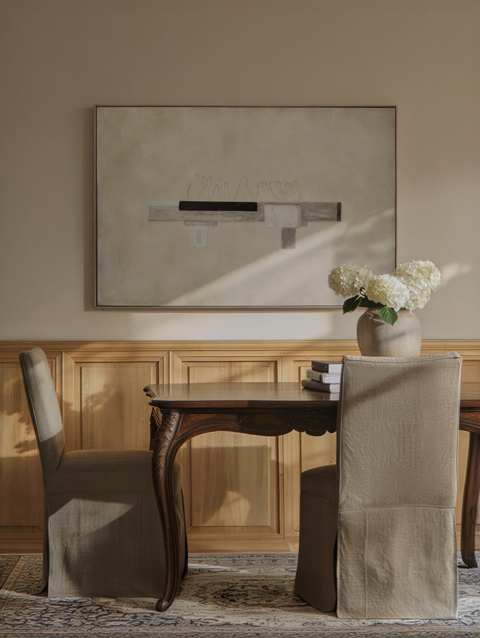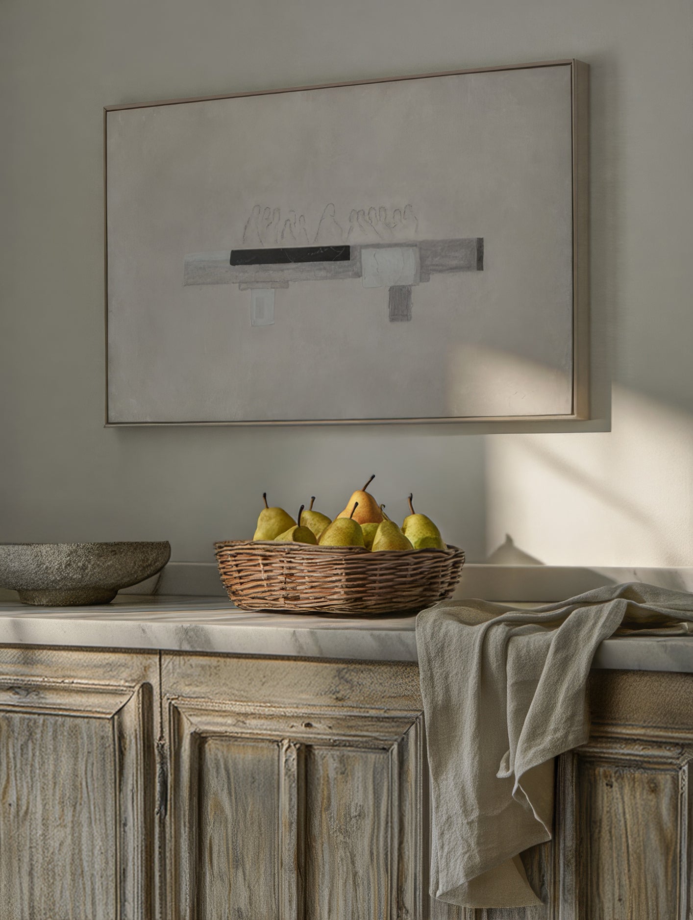 The Last Supper premium canvas print. Jesus and the twelve disciples gather for His final meal. The sacred table and delicate charcoal lines create balance and harmony. A neutral palette of linen beige and soft ivory brings calm and peace.